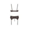 lingerie tre pezzi reggiseno perizoma reggicalze nero con pizzo trasparente sexy