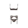 Trio Femme fatale! Sollevando, ribaltando la cintura inguinale e la bretella in un set. Tutte e tre le parti in pizzo nero ed elastico. Sollevare con coppe per cinturino leggermente imbottite, che si riaccendono in modo eccitante nel cavallo.