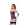 Corpino dalla trasparenza emozionante con barre che modellano la figura, 6 bretelle regolabili e un cordino coordinato. Sono inclusi anche un colletto, manette rimovibili e una sciarpa bondage che offrono opportunità di gioco sensuale.