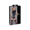 Costume intero raffinato con cerniera nascosta dal colletto rialzato attraverso il cavallo fino al fondo e cerniere nascoste sul seno: l'abito sessuale perfetto! L'imbracatura con cinturino rivettato con manette su catene su ogni lato è completamente rimovibile e può essere indossata anche da sola. Anche le bretelle sono rimovibili. Il mix di materiali elastici alla moda in un look opaco con pizzo delicato sui ritagli di braccia e gambe completa questo look accattivante!