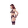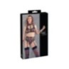 Morbido reggiseno, reggicalze e slip realizzati in powernet elastico con dettagli raffinati in un aspetto opaco e rivetti alla moda. Reggiseno morbido con coppe apribili (bottoni a pressione). Tre cinghie regolabili portano al colletto con chiusura a scatto. Le cinghie sono regolabili per una vestibilità perfetta. Bretella anteriore e laterale con un piccolo anello. Le manette in dotazione con piccoli moschettoni possono essere attaccate ai lati degli anelli. Il reggicalze ha una chiusura a gancio e bretelle regolabili. Le mutandine trasparenti completano questo eccitante trio.
