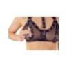 Morbido reggiseno, reggicalze e slip realizzati in powernet elastico con dettagli raffinati in un aspetto opaco e rivetti alla moda. Reggiseno morbido con coppe apribili (bottoni a pressione). Tre cinghie regolabili portano al colletto con chiusura a scatto. Le cinghie sono regolabili per una vestibilità perfetta. Bretella anteriore e laterale con un piccolo anello. Le manette in dotazione con piccoli moschettoni possono essere attaccate ai lati degli anelli. Il reggicalze ha una chiusura a gancio e bretelle regolabili. Le mutandine trasparenti completano questo eccitante trio.