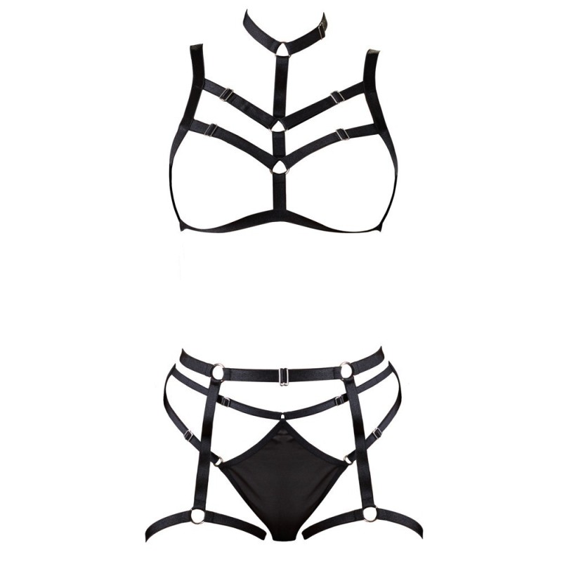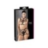 - Set 3 pezzi con imbracatura sul petto e in vita - Regolabile - Con una stringa corrispondente - Imbracatura decorativa per un divertimento diversificato! Questo set di imbracatura è sia elegante che sfacciato - emana anche una calda atmosfera bondage. Il materiale contiene spandex e il set ha anche numerosi fermagli per una vestibilità comoda. 90% poliestere, 10% spandex.