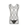 Mini abito sexy e semplice costituito da una serie intrecciata di stringe tipo ragnatela. Cortissimo elasticizzato con le spalle piuttosto larghe. Ideale per incontri trasgressivi e per i party. Ottima indossabilità.