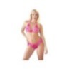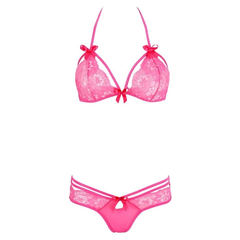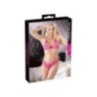 Stile alla moda per ragazze giocose erotiche! Reggiseno morbido e mutandine come un set elegante. Reggiseno per allacciatura con passanti. Entrambe le parti sono realizzate in morbido pizzo misto a Powernet di buon umore color rosa. Rifinito con cinturini che corrono seducenti sul petto e sui fianchi