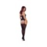 Comodo, eccitante e incredibilmente sexy! Le spalline senza cuciture realizzate in materiale elastico a rete si abbinano a calze intrecciate in pizzo e righe. L'allacciatura in raso rosso è inclusa, ma non deve essere utilizzata. Incluso perizoma in pizzo. Nero