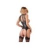Bretella senza bretelle con collo alto e grande anello di strass davanti. Nella parte posteriore con chiusura a gancio e 2 piccoli bottoni per il colletto. Le bretelle sono regolabili in lunghezza. Realizzato in pizzo a fiori bicolore, ingegnosamente abbinato a inserti in tessuto opaco. Compreso perizoma in pizzo senza cavallo. 90% poliestere, 10% elastan; pizzo: 90% poliammide, 10% elastan.