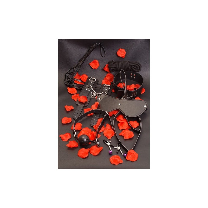 Il BDSM Starter Kit è un ottimo regalo per gli amanti che desiderano avventurarsi nel mondo del BDSM. Il kit fornisce tutto ciò di cui avranno bisogno per un viaggio di scoperta giocoso e sicuro per il corpo. Offre una maschera per gli occhi, una frusta, un set di morsetti per capezzoli, un bavaglio per la bocca, petali di rosa, corda per il bondage e attrezzi per fantasie stuzzicanti che garantiscono un piacere doloroso! Realizzato in pelle PU, cotone, plastica ABS, poliestere e metallo.