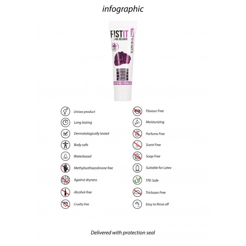 Fist It e un lubrificante a base d'acqua. Adatto all'uso con profilattici di lattice. Istruzioni per l'uso: applicare sul corpo la quantita di gel desiderata e ripetere l'applicazione a piacere. Solo per uso esterno. Tenere fuori dalla portata dei bambini. Conservare in luogo fresco e al riparo dalla luce.