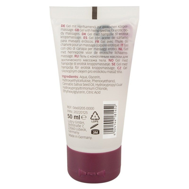 Just Play Hemp Seed lubrificante a base d'acqua con olio di semi di canapa nutriente! Per un divertimento duraturo durante il sesso che abbassa i livelli di stress e promuove il benessere fisico. Vegano. Adatto all'uso con preservativi in lattice. 50 ml.