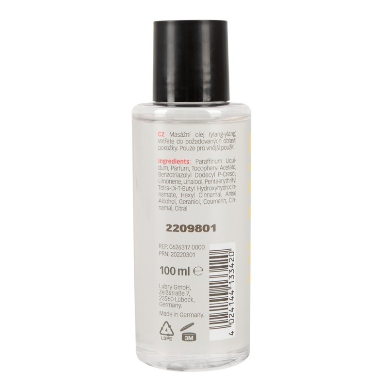 Just Play Erotic Massage Oil con un profumo tropicale e seducente di ylang ylang che coccola tutti i sensi e risveglia gli stati d'animo erotici durante un massaggio con il partner. Molto ricco. Vegano. 100 ml.