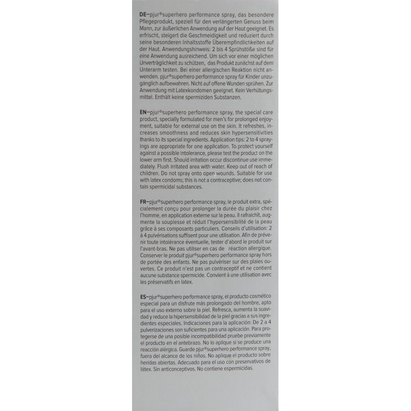 Ecco la risposta al desiderio dei maschietti di prolungare il piacere! Rinfresca, aumenta la morbidezza e diminuisce la sensibilità del pene predisponendoti a vere e proprie maratone a base di sesso: gustoso ed appagante per entrambi i partners! Per godere dei suoi mirabili effetti sarà sufficiente nebulizzare da 2 a 4 volte il prodotto e cominciare le cavalcate! Naturalmente, Pjur Spray è dermatologicamente testato e sicuro per l'uso quotidiano e sicuro con i profilattici.