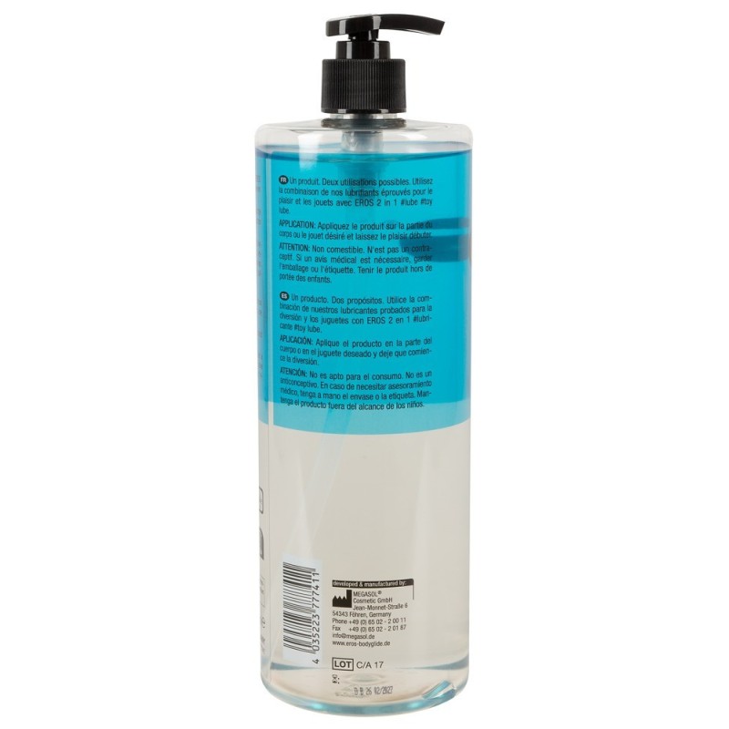Lubrificante 2in1 a base d'acqua e giocattolo di EROS con pantenolo idratante per un uso versatile durante il divertimento sessuale e quando si gioca con i giocattoli - anche in silicone o lattice. Perfetta scorrevolezza e lubrificazione di lunga durata per tutte le attività sessuali. Sicuro per i preservativi in lattice. Inodore e insapore.