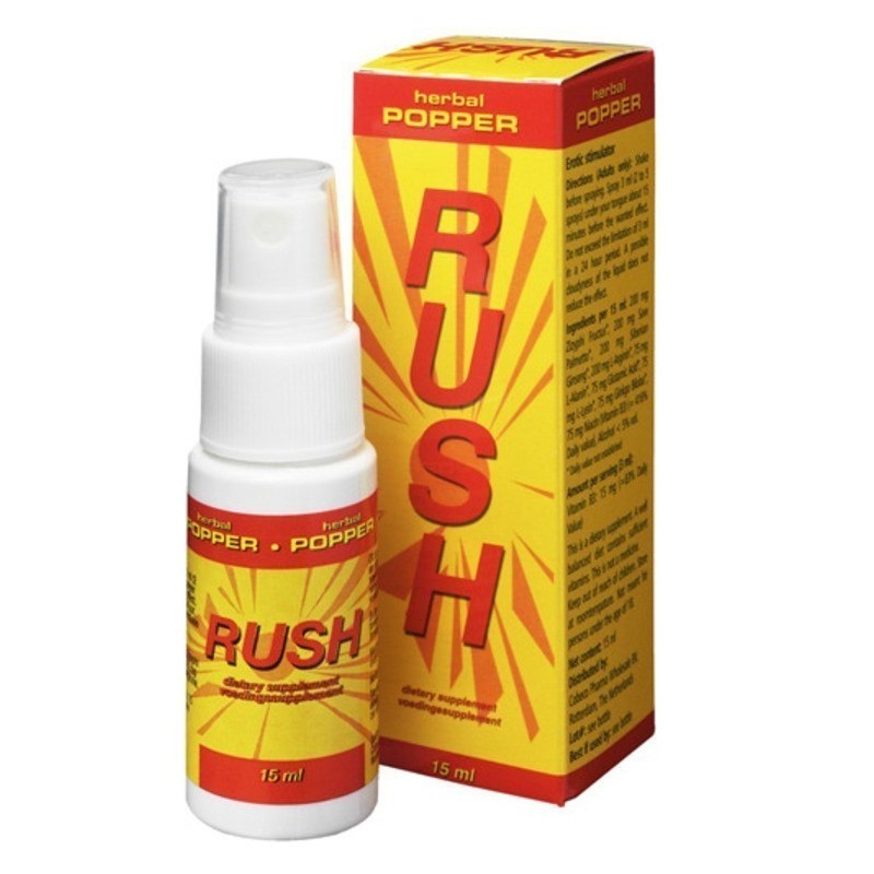 Rush Herbal Popper è un additivo alimentare naturale al 100% che le darà una sensazione breve ma molto passionale. Rush Herbal Popper è uno spray che si prende spruzzandone un po' sotto la lingua. Se si utilizza durante il rapporto o immediatamente prima dell'orgasmo, il suo orgasmo sarà incredibilmente più intenso. MODO D'USO: Agitare prima dell'uso, da 2 a 5 spruzzi sotto la lingua almeno 15 min prima del rapporto. E' consigliato non superare il numero di 5 spuzzi nell'arco delle 24 ore.