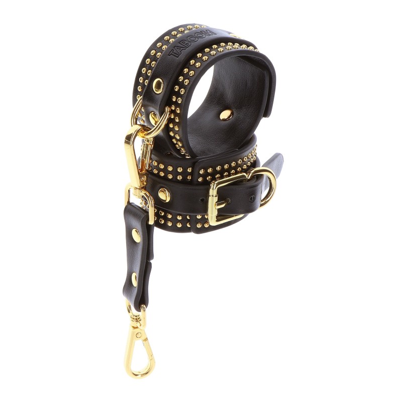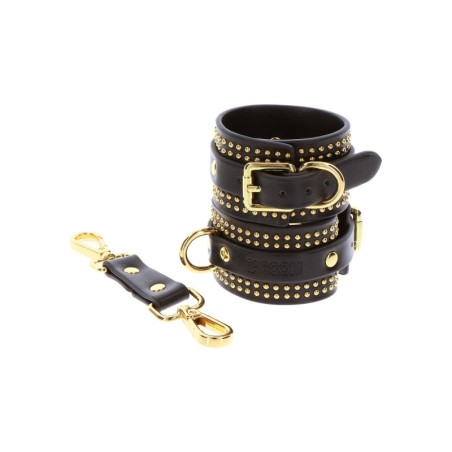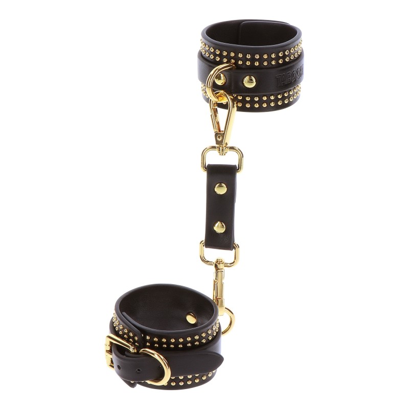Scopri l'apice dell'eleganza e della sensualità con questi TABOOM Wrist Cuffs. Progettati per chiunque desideri abbracciare il mondo del bondage e del BDSM con stile, questi polsini sono la perfetta fusione di fascino e raffinatezza. Eleganti in nero con dettagli opulenti in oro, questi polsini emanano un'aura di lusso semplicemente irresistibile. Il contrasto accattivante dei colori non aggiunge solo un tocco di glamour, ma enfatizza anche il potere e la passione che derivano dall'esplorazione dei tuoi desideri. Offrono una vestibilità sicura e regolabile per adattarsi a diverse dimensioni del polso, garantendo un'esperienza appagante per tutti. Abbraccia l'arte del bondage in modo che incarna grazia e fascino con questi Polsini TABOOM.