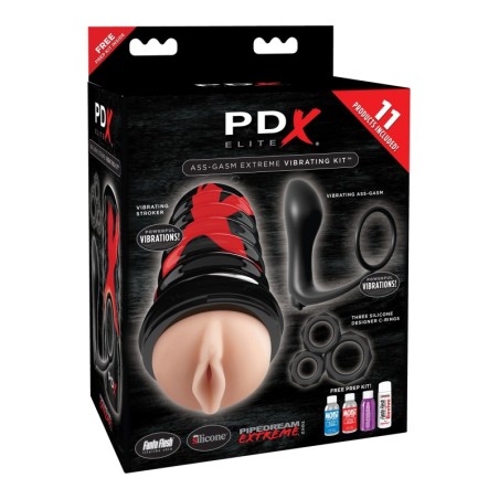 Contenuti: - 1 Masturbatore PDX Elite Air-Tight Pussy Stroker. Masturbatore per vagina in un barattolo con apertura di aspirazione a vuoto.All'interno con nodi di stimolazione. Rimovibile dalla scatola. Lunghezza totale 18,6 cm, profondità di inserimento 15,2 cm, Ø stretto ed estensibile. - 1 Plug anale con anello per il pene Ass-Gasm Cockring Plug Per la stimolazione del punto P e il miglioramento dell'erezione. Spina lunga 8,1 cm, Ø max. 3,4 cm, anello-Ø 4 cm (allungabile), barra di collegamento lunga 8,3 cm. - 2 Bullet Per l'inserimento nel masturbatore o nel plug anale. - 3 anelli per il pene; stretto, rafforza l'erezione. Diametri diversi ed estensibili.