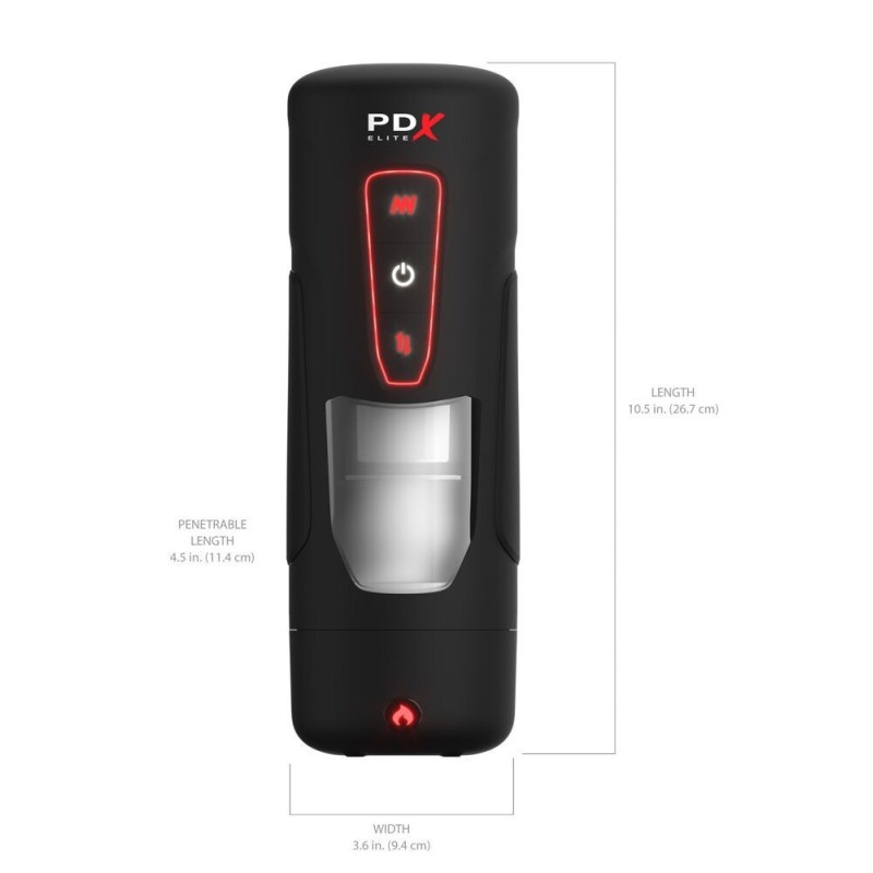 Il masturbatore vibrante riscaldante Milk Me Hotter di PDX Elite è dotato di un alloggiamento pratico e discreto con un'asta riscaldante nel cappuccio protettivo (tecnologia Body Heat). Con potenti vibrazioni e un intenso massaggio d'urto intermittente che coccola il pene in ogni sua parte. La funzione calore è disponibile anche premendo un pulsante per portare rapidamente il masturbatore alla giusta temperatura corporea e operativa.