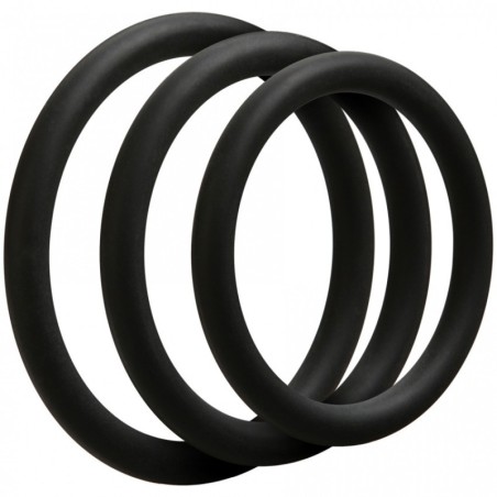 Ottimizzate la vostra esperienza con questi anelli per cazzo in silicone! Il set di anelli a C sottili OptiMALE offre dimensioni e circonferenza migliorate con tre anelli di diametro 40 mm, 45 mm e 50 mm. Questi anelli sono ultra estensibili per un facile utilizzo intorno all'asta o ai testicoli, per mantenere le erezioni durature che avete sempre sognato e per prolungare l'eiaculazione. Disponibili in nero e ardesia; silicone privo di ftalati.