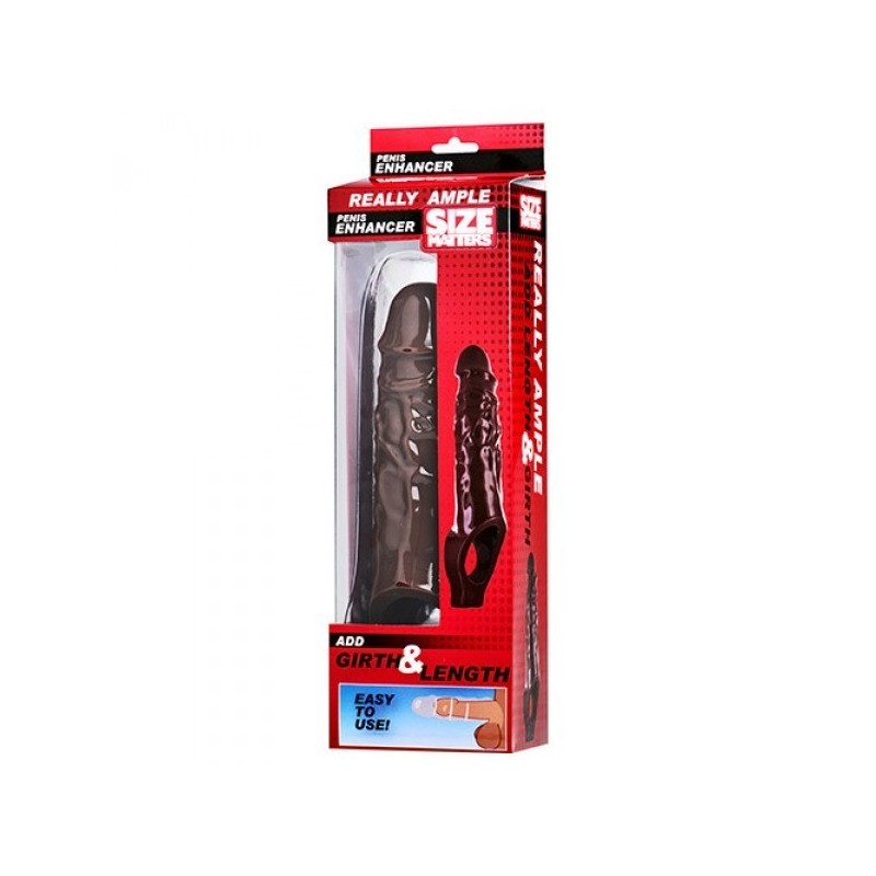 Really Ample Penis Enhancer Sheath- Brown è una guaina per pene capace di aumentare le dimensioni del pene sia in lunghezza che in larghezza. Realizzato in materiale TPR, di colore marrone, è abbastanza elastico per adattarsi alla maggior parte delle dimensioni. È sufficiente far scivolare all'interno della guaina il vostro pene e montare montare l'anello dietro i testicoli, per giocare e divertirsi in tutta sicurezza. Aggiunge lunghezza e circonferenza, e internamente rilievi per aumentare il piacere. Incrementate il vostro potenziale con Size Matters. Potrete estendere la resa della vostra performance sessuale con una linea di prodotti che renderanno tutto più grande e migliore! Size Matters propone una selezione di prodotti per le zone erogene per quanti siamo interessati al potenziamento. Scoprite nuove vette di piacere, con l?aumento sensibile della vostre dimensioni. Con Size Matters potrete spingere il vostro desiderio oltre i confini e i limiti della vostra fisicità!