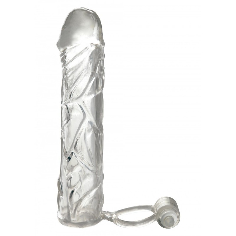 Guaina fallica morbida con anello fallico vibrante per la stimolazione del clitoride . una prolunga per il pene di altissima qualità .