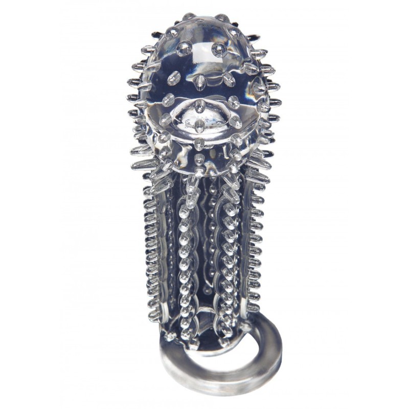 guaina fallica indossabile prolunga oer il pene con anello fallico contro eiaculazione precoce . Una guaina fallica articolata, che aggiungerà lunghezza e diametro al vostro pene ma che garantirà una stimolazione exra alla vostra partner grazie ad una serie di differenti protuberanze. Il silicone è morbido, particolarmente elastico e confortevole.
