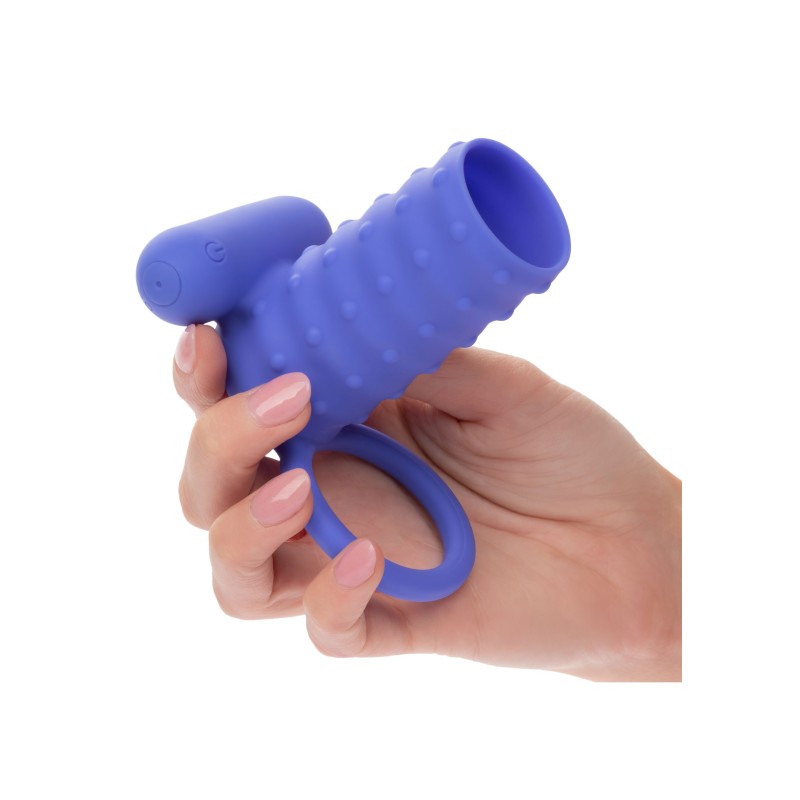 Vibratore di coppia elastico e confortevole, con manicotto a coste per un maggiore sostegno e una maggiore circonferenza.