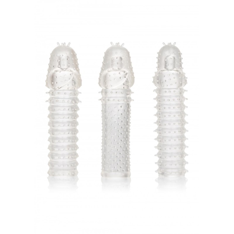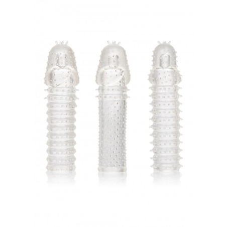 kit composto da 3 guaine falliche indossabili . Le guaine potranno essere indossate sul pene oppure su un fallo o vibratore .