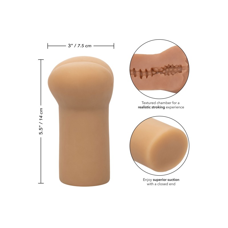 Concedetevi sogni bagnati da brivido con il masturbatore Cheap Thrills The Leather Daddy. Il design chiuso garantisce un'aspirazione superiore, mentre la camera multi-testurizzata e il materiale Pure Skin, ultra morbido ed elastico, eccitano con sensazioni simili alla vita. L'aspirazione superiore e la texture elettrizzante sono fatte per avvolgere ogni centimetro di voi con una stimolazione da far tremare le ginocchia. Sia a casa che ovunque il piacere vi porti, il compatto 14 cm (5,5 pollici) è il compagno di viaggio che desiderate. L'esclusiva Pure Skin non è profumata, non contiene ftalati e non richiede manutenzione, per mantenere i vostri punti più sensibili felici e sani.