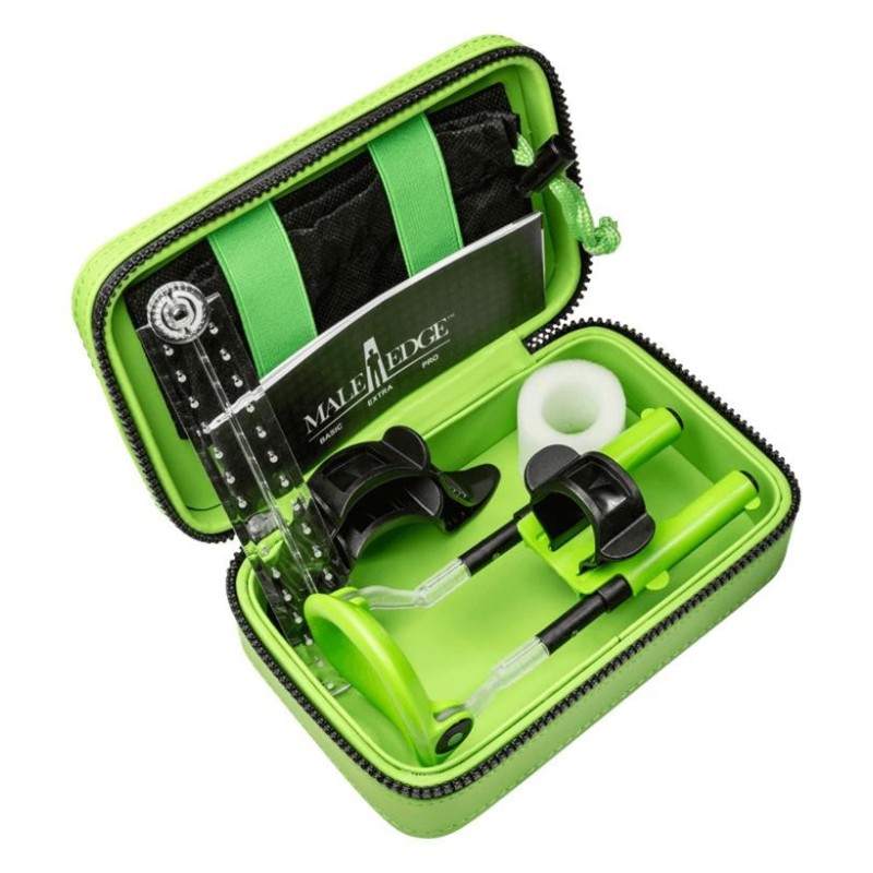 Espansore per un ingrandimento del pene indolore. Adatto per una lunghezza del pene di 4-24 cm. Con video esplicativo online e accesso a un forum. Con diario di formazione e righello per registrare i successi. Include 2 anelli di gomma aggiuntivi e un tampone di protezione.