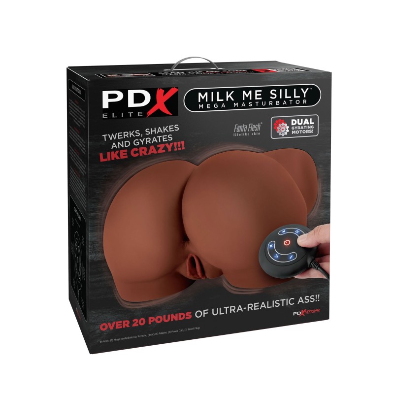 Twerks, Shakes e Gyrates come una pazza! La mungitura fa bene al cazzo duro! Speriamo che siate pronti, perché state per godere dell'esperienza di mungitura più intensa e realistica del mondo con il Milk Me Silly! Questo gigantesco masturbatore a bolle d'aria è pronto a mungere il vostro cazzo con due potenti motori rotanti che vibrano e massaggiano allo stesso tempo. È possibile scegliere tra 5 diverse funzioni di rotazione e 5 diverse funzioni di vibrazione per una combinazione infinita di divertimento di mungitura. Non c'è niente di meglio che scopare un grosso e succoso sedere a bolla, e con oltre 20 libbre del nostro caratteristico Fanta Flesh, il Milk Me Silly lo porta decisamente al livello successivo!