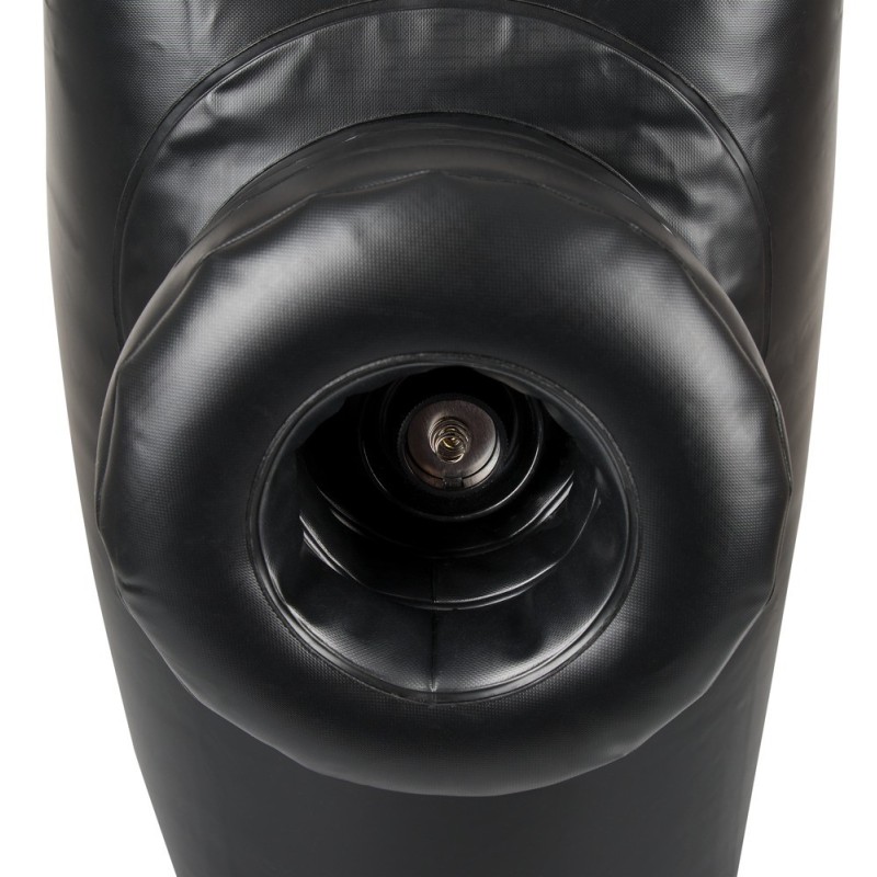 Lettino gonfiabile nero con elemento gonfiabile separato (50 cm di altezza, 30 cm di larghezza, 30 cm di profondità), che ha una funzione d'urto telecomandata a 3 stadi. La fornitura comprende tre vibratori, che possono essere utilizzati anche separatamente e vibrano non appena vengono avvitati nell'adattatore.