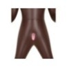 Bambola gonfiabile colore carne scura a grandezza naturale con una pelle di velluto marrone, una bocca disposta, la vagina e l'ano stretto opening.