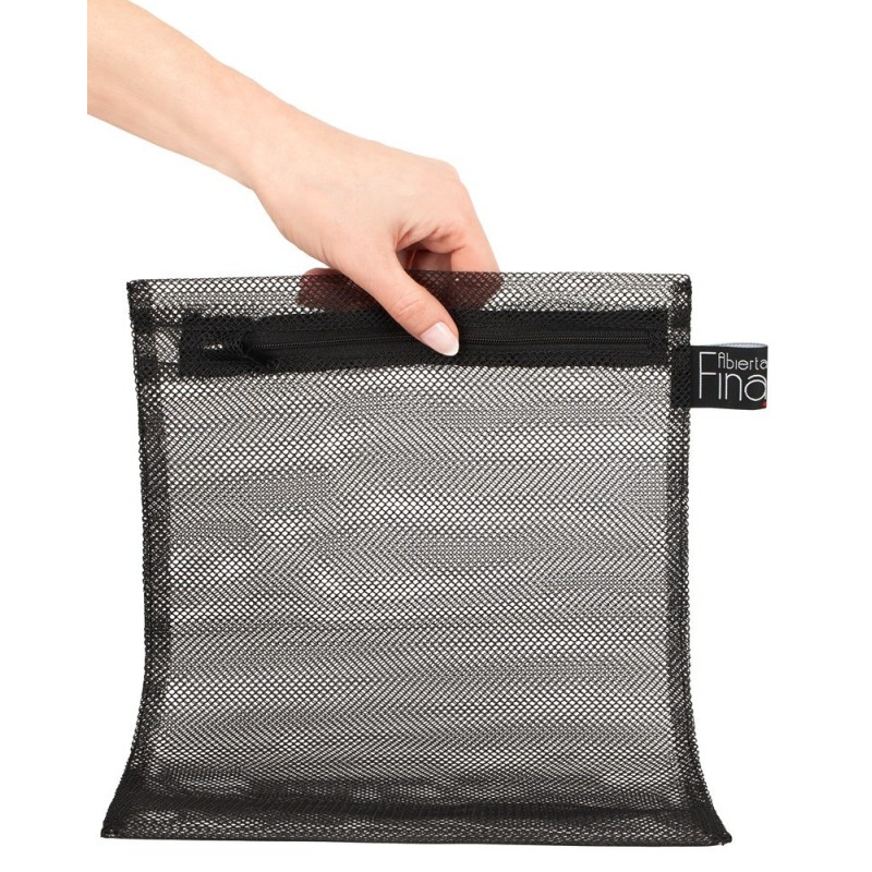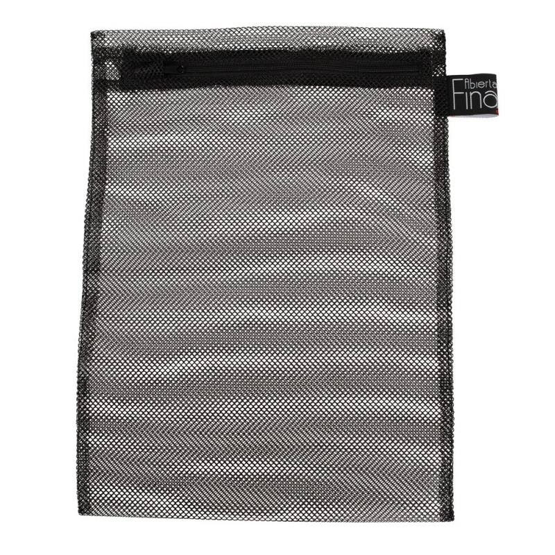 Borsa per il bucato in rete nera con scritte a 2 colori. Con pratica cerniera per una rapida apertura e chiusura. Adatto per lavatrice e asciugatrice. 35 cm di lunghezza, 25 cm di larghezza. Poliestere.