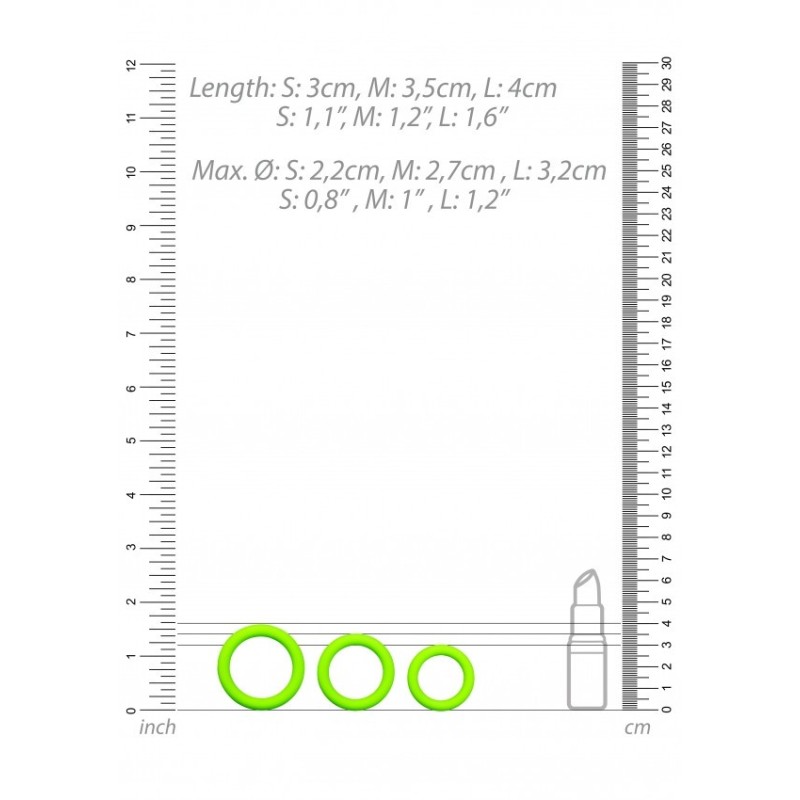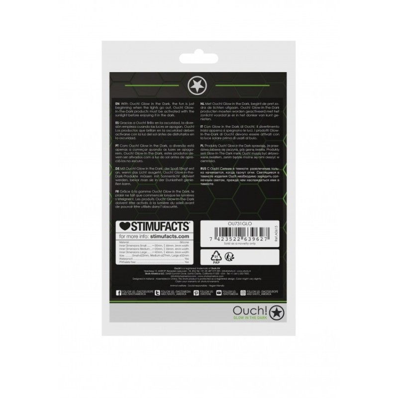 Glow-In-The-Dark di Ouch!, il futuro del bondage è qui. Progettato con un'estetica bondage autentica, ma con il piacere aggiunto delle proprietà luminescenti al buio, i dettagli in verde fluorescente trasformeranno ogni evento in qualcosa di unico. Questo set di anelli fallici contiene tre anelli di dimensioni comode ed elastici. Gli anelli miglioreranno le tue prestazioni sessuali e ti offriranno tantissime possibilità grazie alla loro flessibilità. I prodotti Glow-In-The-Dark di Ouch! devono essere attivati con la luce solare prima di usarli al buio.