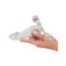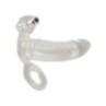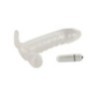 Questa guaina trasparente per il pene fatta di morbido materiale elastico porta il pene in ottima forma per riempire l'indulgenza. La guaina aderente, che sostiene l'erezione, si infila semplicemente sul membro eretto e assicura una vestibilità ferma e confortevole senza scivolare grazie all'anello per i testicoli. Grazie allo spessore del materiale e alla particolare struttura di stimolazione, il pene si ingrandisce in circonferenza e si allunga grazie al glande di forma soda. Il piccolo e potente Vibrobullet è inserito nell'anello superiore e fornisce un'eccitante stimolazione aggiuntiva. Comprese le batterie (3 x LR44) per il Vibrobullet.