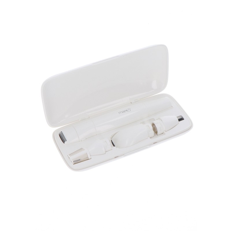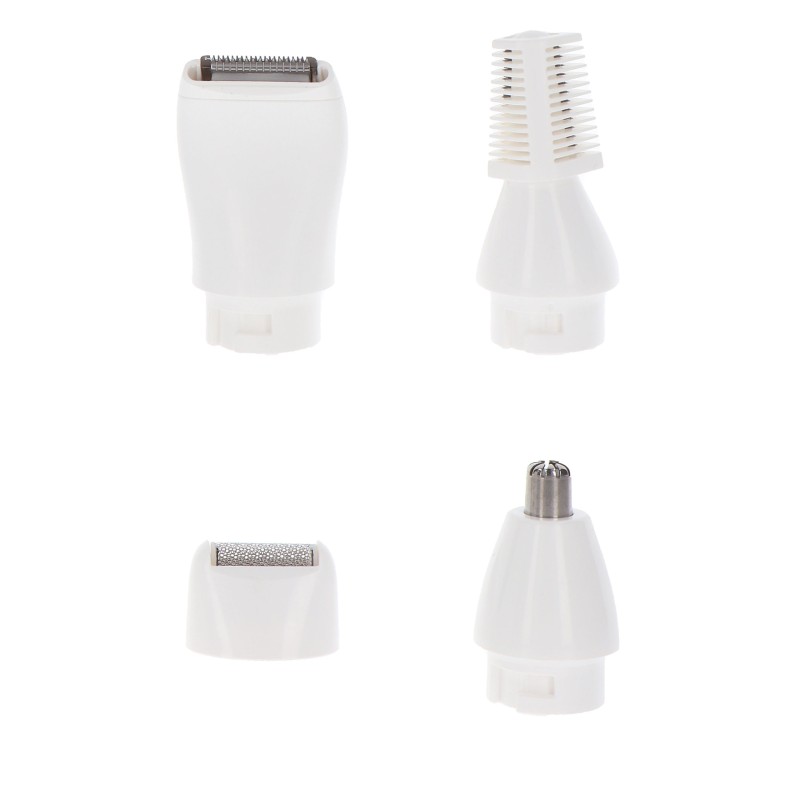 All in one Ladyshave - Rifinisci e modella con precisione i peli del viso e del corpo con il ladyshave all-in-one di Mae B. L'impugnatura ergonomica offre un controllo e un comfort ottimali durante l'uso. Le lame affilate, ipoallergeniche e in acciaio inossidabile rimuovono i peli del viso e del corpo in modo efficiente e sicuro. La rasatura da donna all-in-one include un set completo con quattro diverse testine di rifinitura e una custodia per mantenere il dispositivo e gli accessori al sicuro.