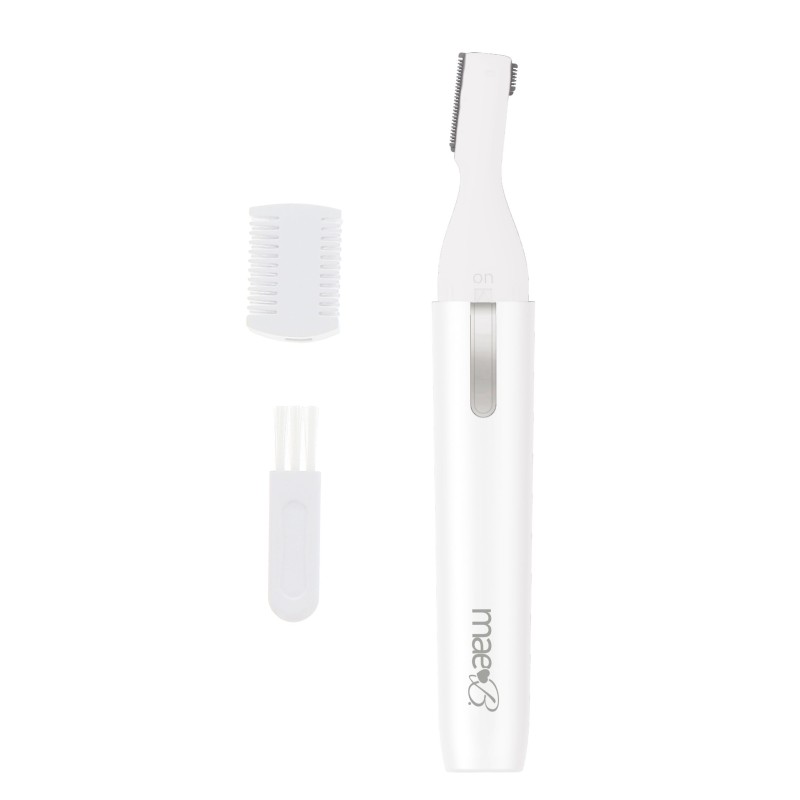 Rifinitore elettrico a due lati - Il rifinitore elettrico a due lati di Mae B. è uno strumento di bellezza discreto che rende facile e veloce rimuovere anche i peli più sottili del corpo e del viso in viaggio o a casa. Viene fornito con 2 diverse lame per una maggiore precisione. Lame in acciaio inossidabile, ipoallergeniche, resistenti, che lo rendono sicuro per il corpo e delicato sulla pelle.