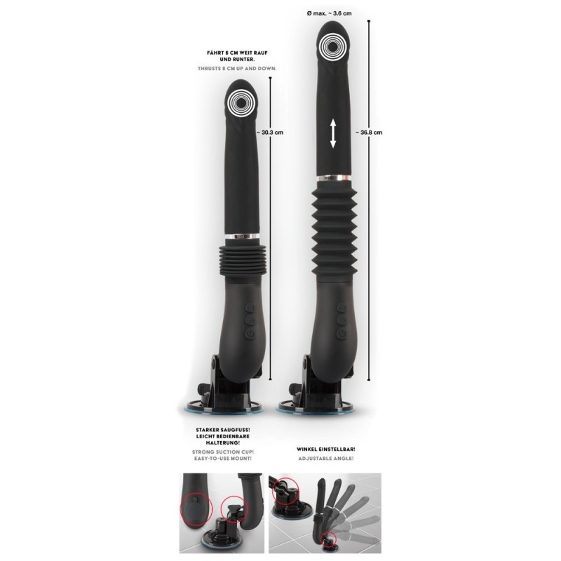 Vibratore d'urto RC Fucking Machine 2.0 di You2Toys con base a ventosa rimovibile e regolabile nell'angolo che si attacca saldamente e in modo sicuro a qualsiasi superficie liscia per il piacere a mani libere.