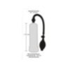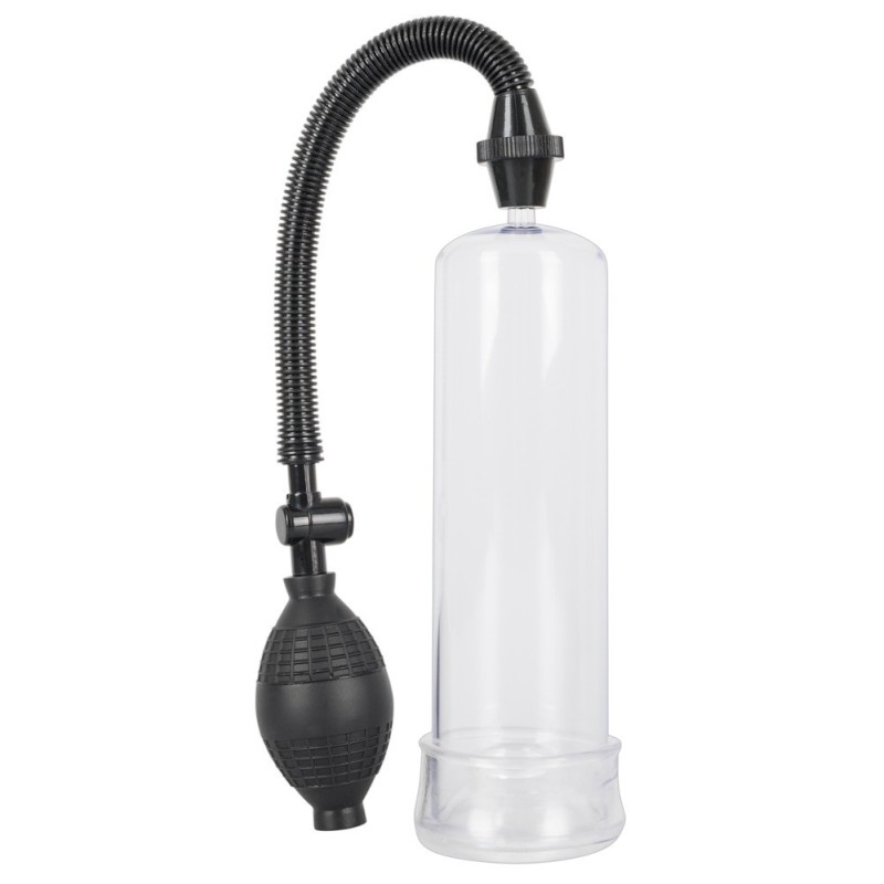 Portate LUI in condizioni ottimali! Pompa a vuoto che consente di allenare efficacemente il pene e la potenza con risultati permanenti. Pratica sfera di pompaggio con valvola di sicurezza a pressione. Cilindro a vuoto trasparente lungo 20,2 cm, profondità di inserimento 19,5 cm, Ø interno 5,3 cm, Ø esterno 5,5-5,8 cm. Ø dell'apertura del manicotto 2,5 cm (flessibile). ABS, PVC, TPE, SAN.