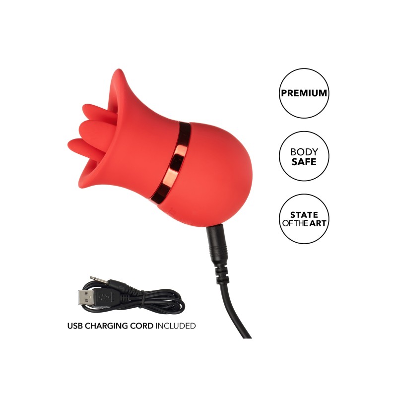 Due volte il piacere, oh la la! Il sensuale set intercambiabile French Kiss Suck & Play sa cosa vi serve con 2 accessori intercambiabili con 12 funzioni di vibrazione o 12 funzioni di aspirazione. La paletta a contatto completo e lo svolazzante stuzzica lingua triplo sono stati realizzati per adattarsi perfettamente ai vostri punti di piacere più intimi con 12 funzioni intense. Inserite l'encaser sensualmente sagomato e godetevi 12 funzioni di aspirazione o un vero e proprio bacio alla francese con 12 funzioni di azione tremolante. Il morbido silicone e il corpo sensualmente sagomato consentono di offrire un piacere mirato da quasi tutte le angolazioni. Utilizzate il pulsante easy-touch per controllare fino a 50 minuti di piacere. Ricaricate il vostro piacere in solo 1 ora con il cavo USB in dotazione nella porta di ricarica autosigillante del massaggiatore. Le dimensioni discrete del mini massaggiatore e il pulsante di blocco da viaggio lo rendono un compagno di viaggio perfetto, che vi permetterà di abbracciare il piacere irradiato ovunque vi portino le vostre fantasie.