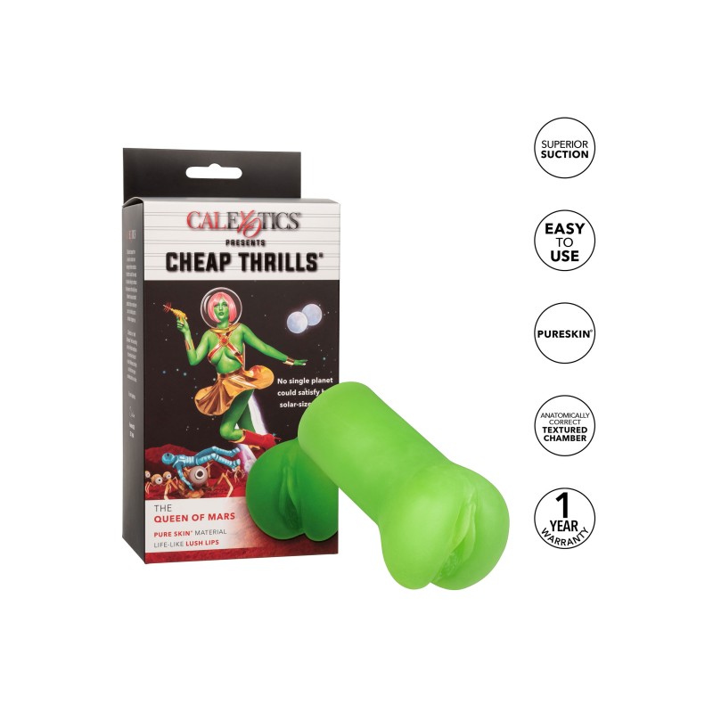 Esplodete in una nuova galassia di piacere quando infilate lo stroker Cheap Thrills The Queen of Mars. Il design chiuso garantisce un'aspirazione superiore, mentre la camera dalla texture unica e il materiale Pure Skin, morbidissimo ed elasticizzato, vi faranno provare sensazioni simili a quelle della vita. Sia a casa che ovunque il piacere vi porti, il compatto 14 cm (5,5") è il compagno di viaggio che desiderate. Il pregiato Pure Skin non è profumato, non contiene ftalati e non richiede manutenzione, per risultati davvero esplosivi.