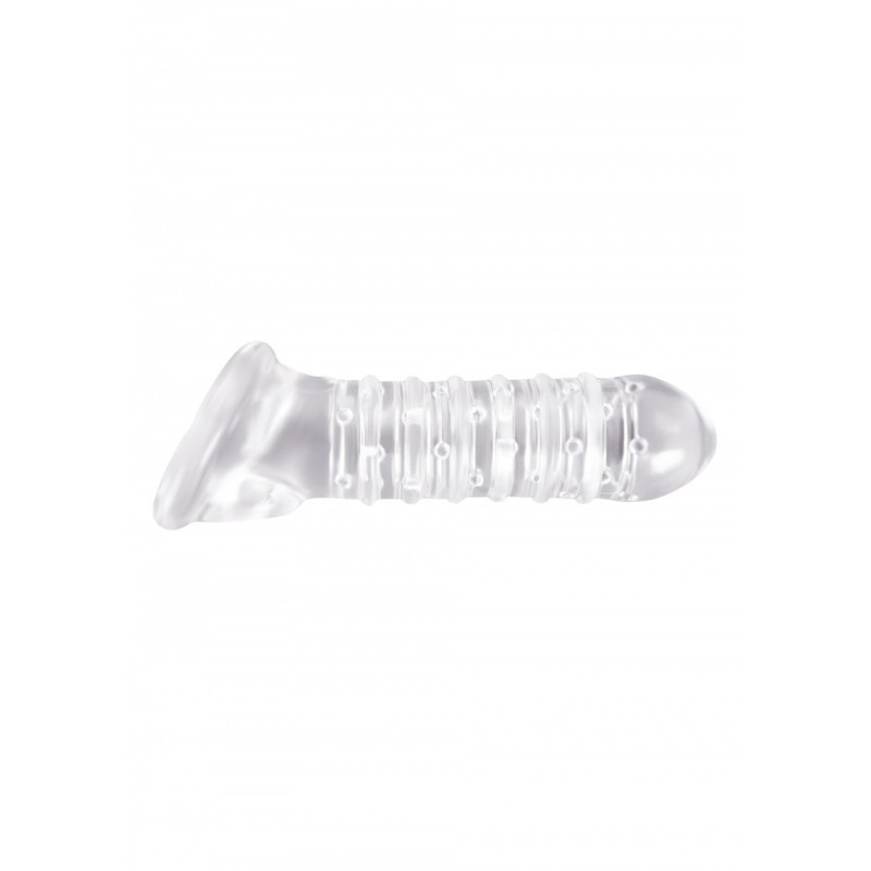 Guaina fallica realistica trasparente . La prolunga fallica con creste stimolanti si interne che esterne . Prodotto privo di ftalati .