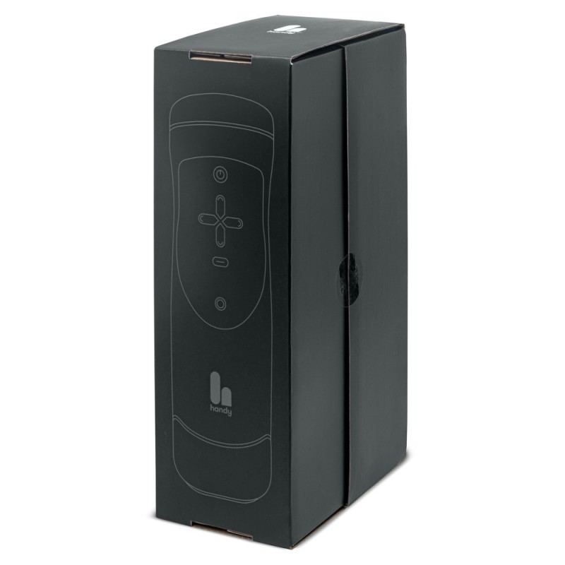 Il masturbatore high-tech The Handy Interactive Stroker ha ricevuto un aggiornamento del software (firmware 3) e ora funziona in modo ancora più potente e stabile. Anche l'hardware è stato migliorato e la guaina è ora ancora più scivolosa. La confezione è stata rinnovata con stile e la guida rapida (in inglese, tedesco, francese e spagnolo) è ora inclusa nell' The Handy Interactive Stroker, in modo che possiate iniziare a usarlo subito. Pratico anche il nuovo adattatore angolare a 90° per l'alimentatore.