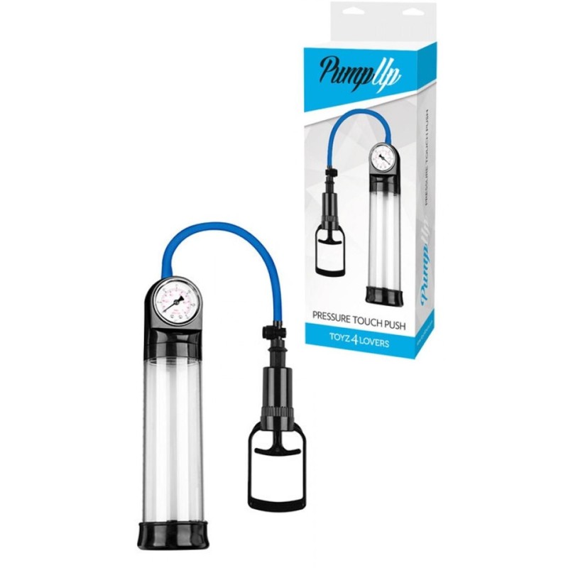 Pompa sviluppatore per pene a pompa pump up pressure touch finger con barometro è uno sviluppatore a pompa manuale con manomentro. Con Pump UP Pressure Touch l?erezione sara' sempre piu' forte! Osserva la crescita del pene attraverso il cilindro trasparente in ABS con la guaina per l?inserimento in morbido Tpr per una tenuta ermetica, che permette di visionare in tempo reale i progressi del pene, con un efficace manometro, funzionale ed elegante e una semplice scala numerica. L'azione della Pump UP Pressure Touch è facile, veloce e sicura grazie alla semplice pressione del pulsante per azionarla e ad un pulsante della valvola di rilascio rapido che consente di avere una pressione personalizzabile. La pompa accresce il flusso di sangue al pene per l'erezione, aumentandone la dimensione e la soddisfazione sessuale. Priva di ftalati. LUNGHEZZA TUBO FLESSIBILE 25,90 CM