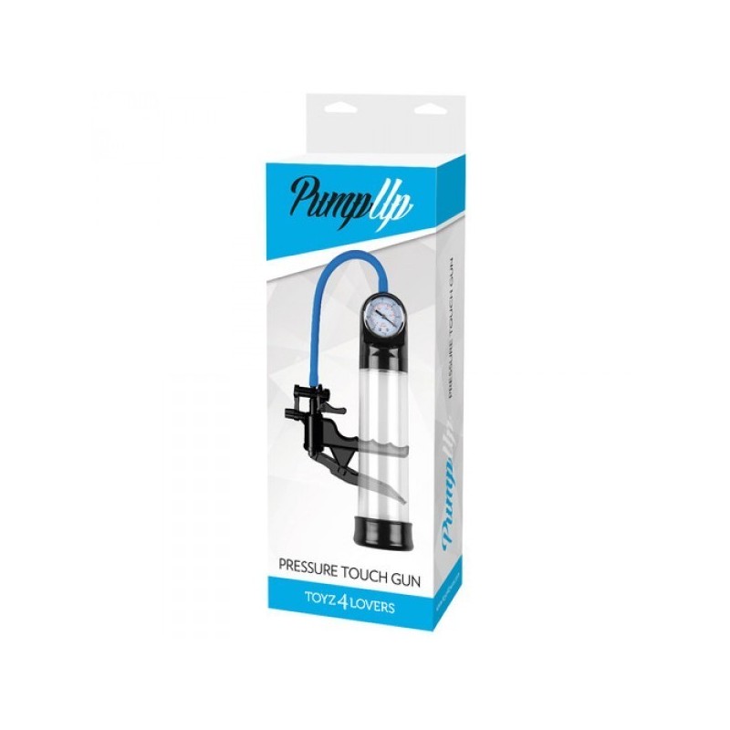 Pompa per allungare rafforzare il pene pump touch gun push trasparente uno sviluppatore a pompa manuale con manomentro. Con Pump UP Pressure Touch l?erezione sara' sempre piu' forte! Osserva la crescita del pene attraverso il cilindro trasparente in ABS con la guaina per l?inserimento in morbido Tpr per una tenuta ermetica, che permette di visionare in tempo reale i progressi del pene, con un efficace manometro, funzionale ed elegante e una semplice scala numerica. L'azione della Pump UP Pressure Touch è facile, veloce e sicura grazie alla semplice pressione del pulsante per azionarla e ad un pulsante della valvola di rilascio rapido che consente di avere una pressione personalizzabile. La pompa accresce il flusso di sangue al pene per l'erezione, aumentandone la dimensione e la soddisfazione sessuale. Priva di ftalati. LUNGHEZZA TUBO FLESSIBILE 25,90 CM