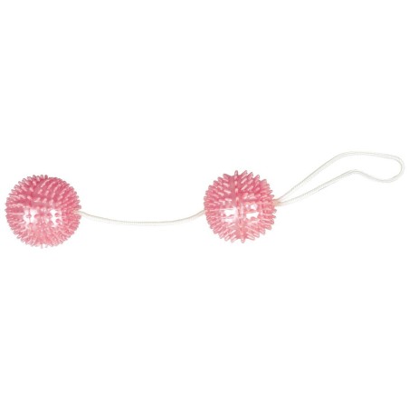 Palline anali vaginali con crestine stimolanti . Prodotto privo di ftalati diametro 3,5 cm realizzati in pvc 2 perle collegate da un cavo. Lunghezza 18,5 cm privo di ftalati secondo regolamento vigente.
