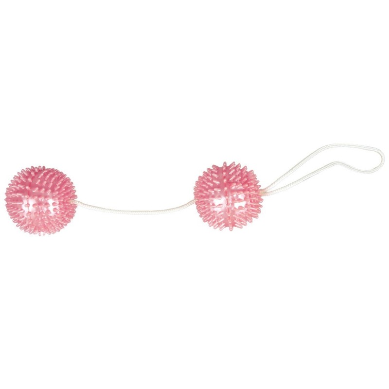 Palline anali vaginali con crestine stimolanti . Prodotto privo di ftalati diametro 3,5 cm realizzati in pvc 2 perle collegate da un cavo. Lunghezza 18,5 cm privo di ftalati secondo regolamento vigente.