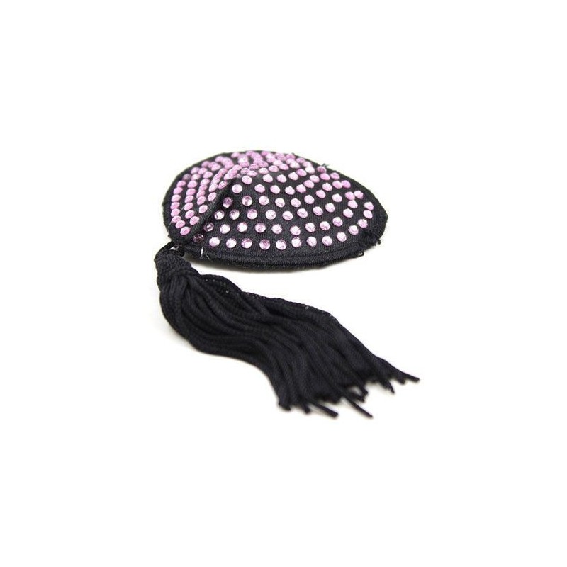 Copricapezzoli a forma di cuore con strass argentati e nastrini neri. Un prodotto della linea Fetish Art di Toys4Lovers.