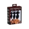 Set composto da tre spine di dimensioni diverse. Con anello di ritorno. Nero. Spina piccola: lunghezza 9,5 cm, profondità di inserimento 5,5 cm, Ø 0,9-2,5 cm. Tappo centrale: 10,5 cm di lunghezza, profondità di inserimento 6,5 cm, Ø 1-3,1 cm. Spina grande: lunghezza 12,5 cm, profondità di inserimento 8 cm, Ø 1,2-3,8 cm.