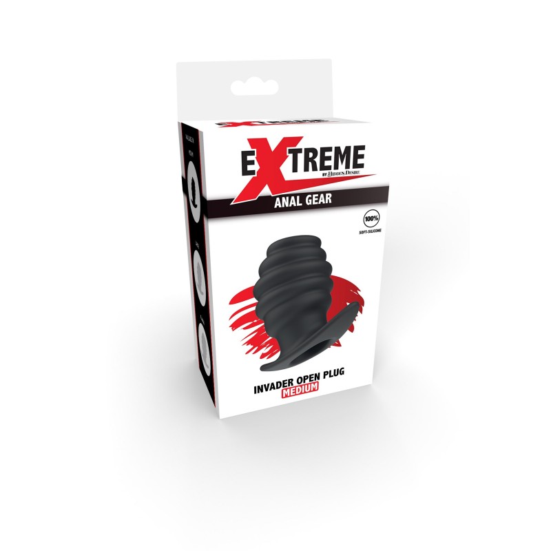 Extreme by Hidden Desire offre una collezione unica di giocattoli anali appositamente progettati per coloro che osano spingere i limiti del piacere. Il Invader Open Plug è progettato per fornire una stimolazione extra con ogni costola che scorre oltre il tuo sfintere. Una volta ben inserito, regalerà una sensazione piena e imbattibile. Con l'Invader in posizione, puoi infilare qualsiasi cosa attraverso il buco per orgasmi ancora più intensi. Realizzato al 100% in silicone puro e dotato di un'ampia base per sicurezza e comfort, l'Invader garantisce un'esperienza entusiasmante. Sblocca le tue fantasie più selvagge con l'Extreme Invader Open Plug.